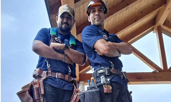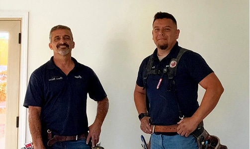 Meet Joey and Mauricio! Joey has been with Conn Doors since 2014 and Mauricio since 2023. Together this journeyman level crew specializes in residential homes, specifically the installation of beams and wall treatments. Joey and Mauricio passion for craftsmanship brings precision and pride to every project.